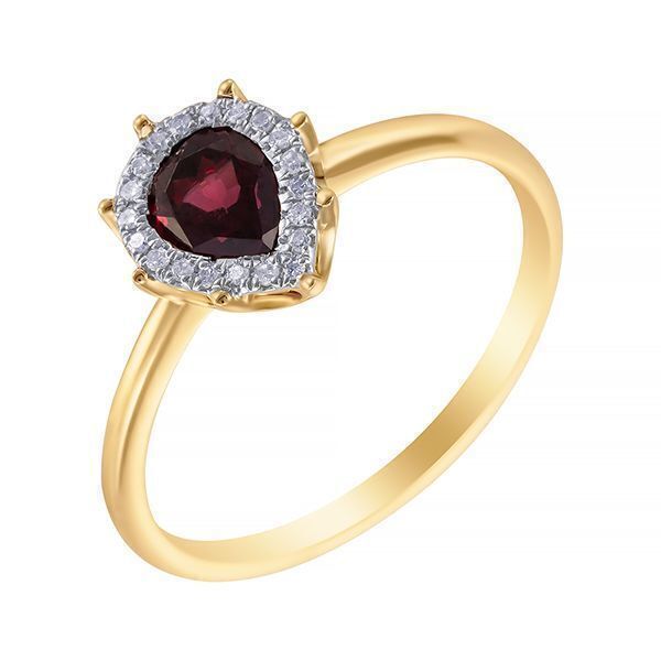 Кольцо из золота 585 пробы с родолитом и бриллиантами (18,5)