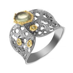 Кольцо из серебра 925 пробы с пренитами и перидотами (17,5)