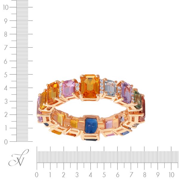 Кольцо из розового золота 585 пробы с бриллиантами и сапфирами (17,5)