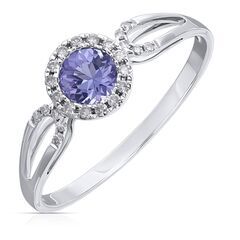 Кольцо из белого золота 585 пробы с танзанитом и бриллиантами (18) код. 83109
