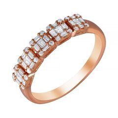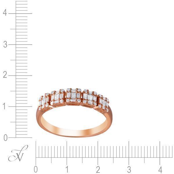 Золотое кольцо 585 пробы, камни - бриллиант огранка круглая 17 граней 3/3 - 20шт. вес 0.12 карата, бриллиант огранка багет 25 граней 4/6 - 25шт. вес 0.32 карата