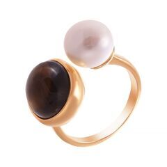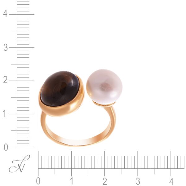 Кольцо из серебра 925 пробы с раухтопазами и барочным жемчугом код. 84607