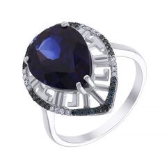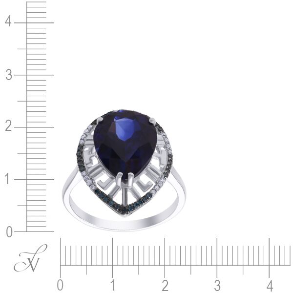 Кольцо из белого золота 585 пробы с бриллиантами и выращенным сапфиром (17) код. 8907