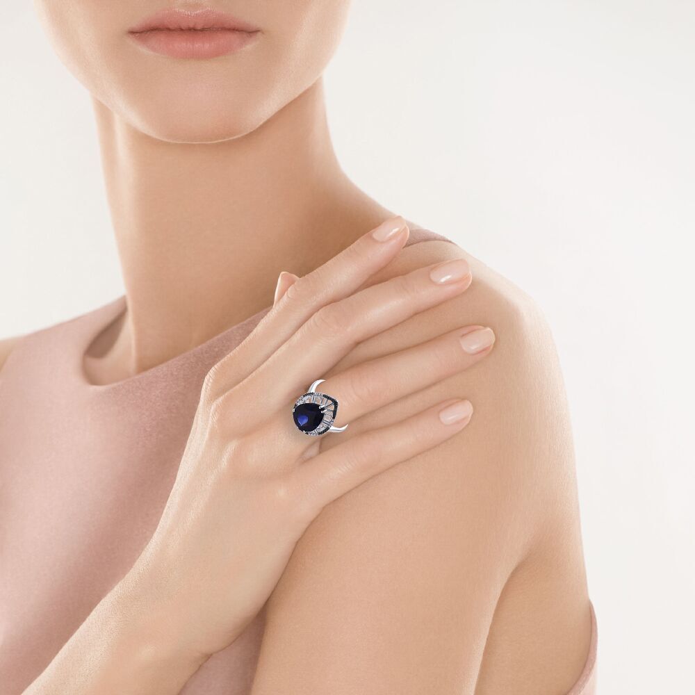 Кольцо из белого золота 585 пробы с бриллиантами и выращенным сапфиром (17)
