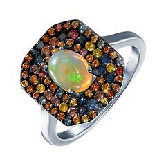 Кольцо из серебра 925 пробы с опалами и сапфирами (18) код. 89929