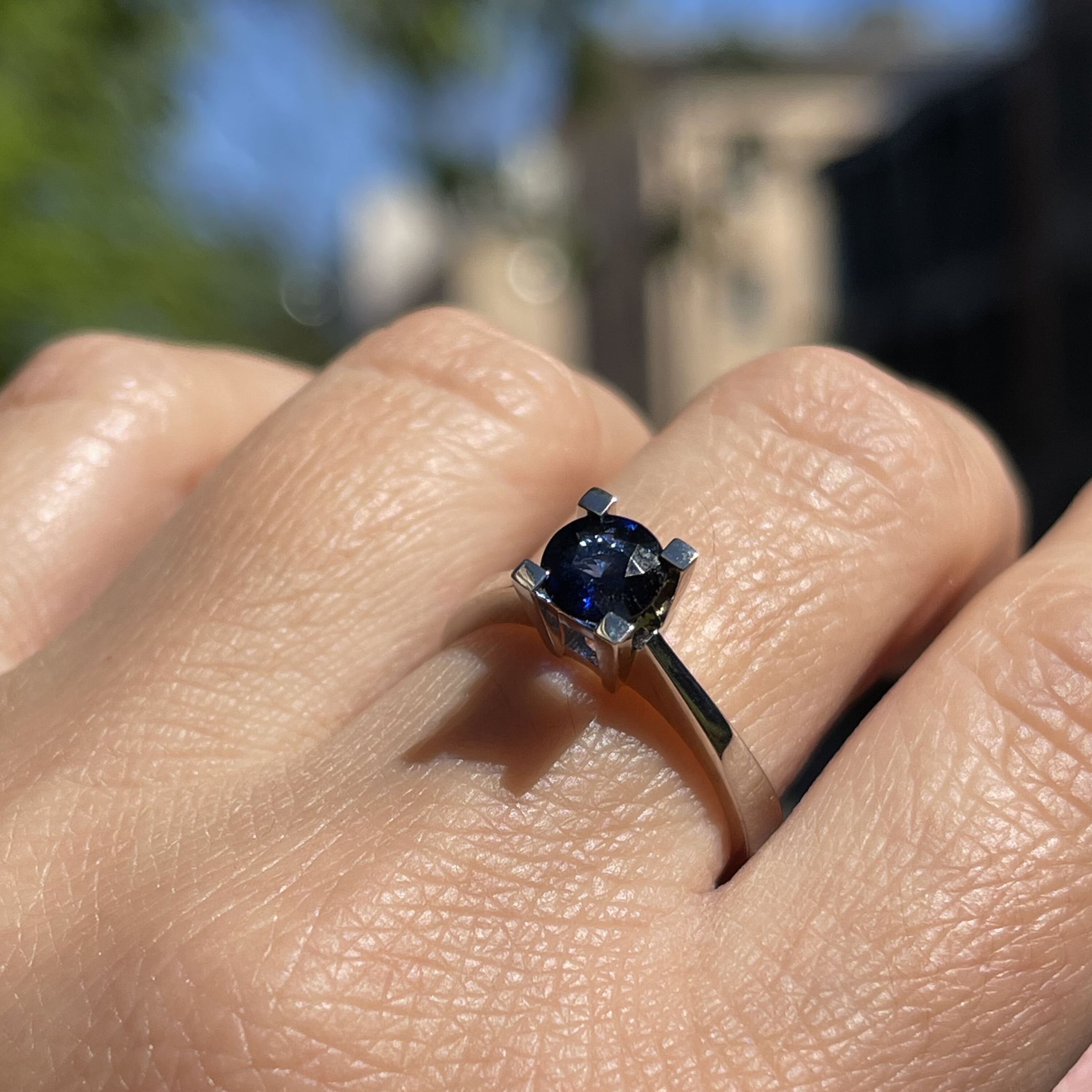 Золотое кольцо 585 пробы, камни - сапфир облагороженный д/г2 - 1шт. вес 1.06 карата