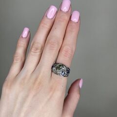Кольцо из белого золота 585 пробы с сапфирами и бриллиантами (17,5)
