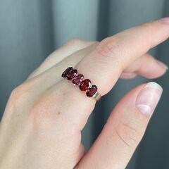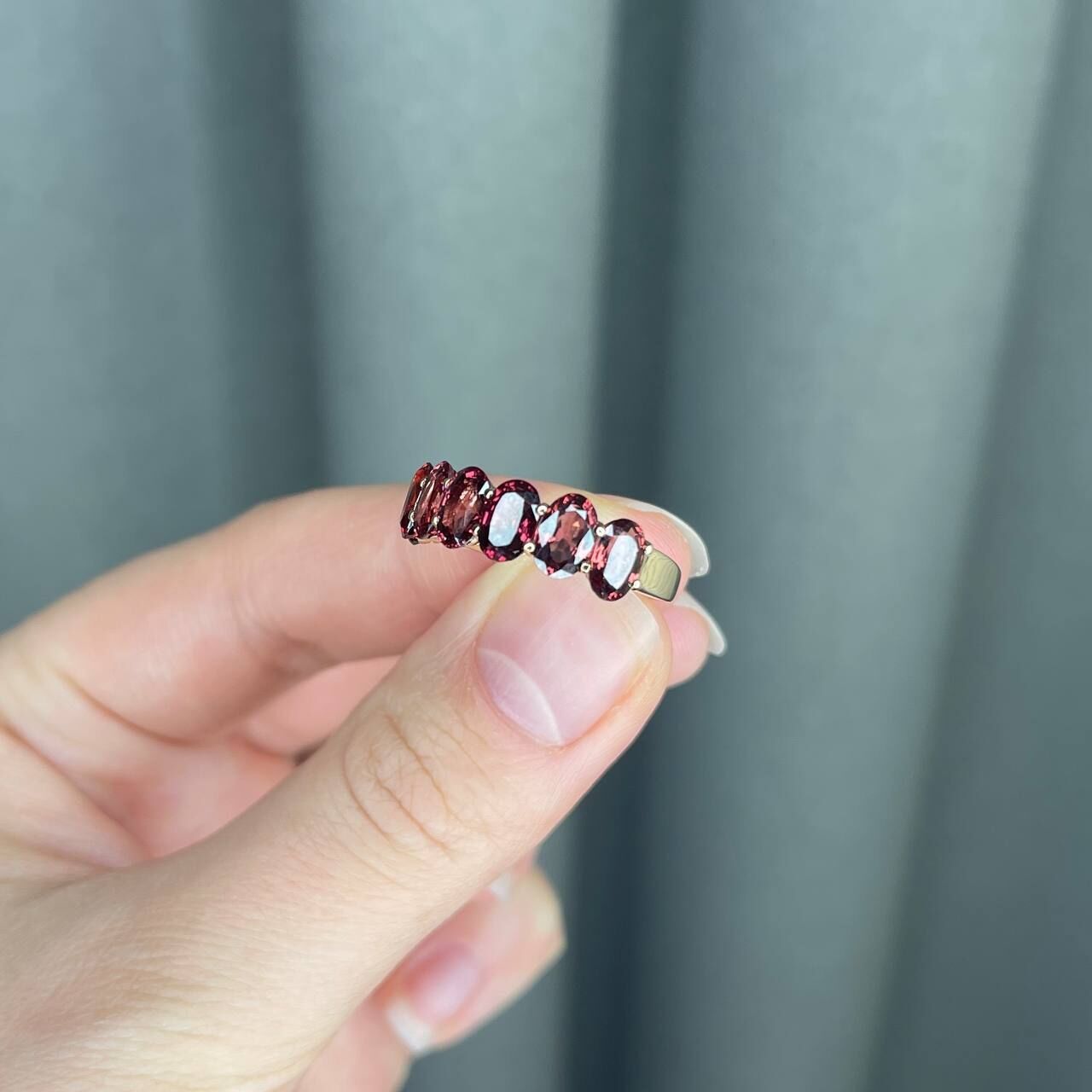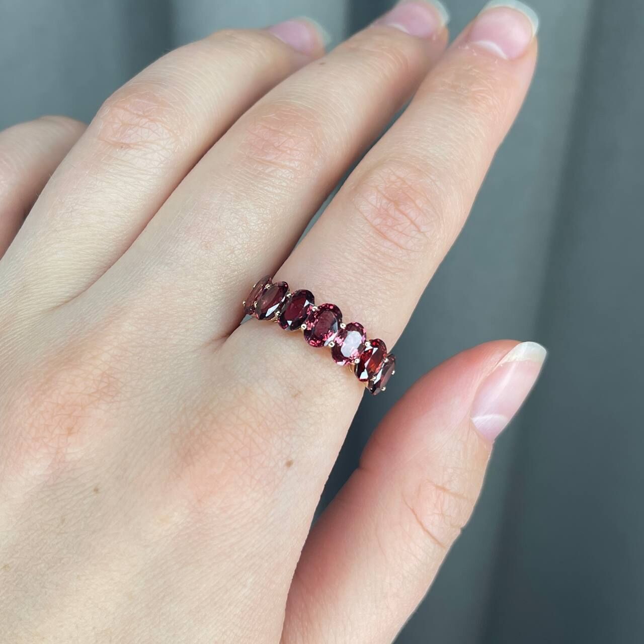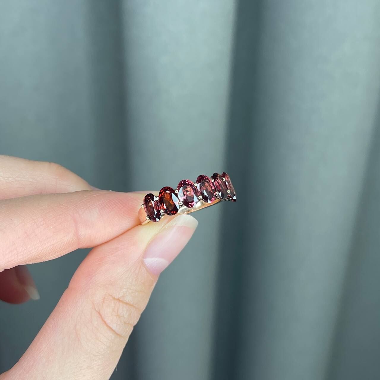 Золотое кольцо 585 пробы, камни - шпинель цветной овал - 7шт. вес 3.85 карата