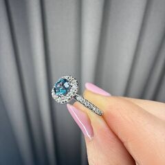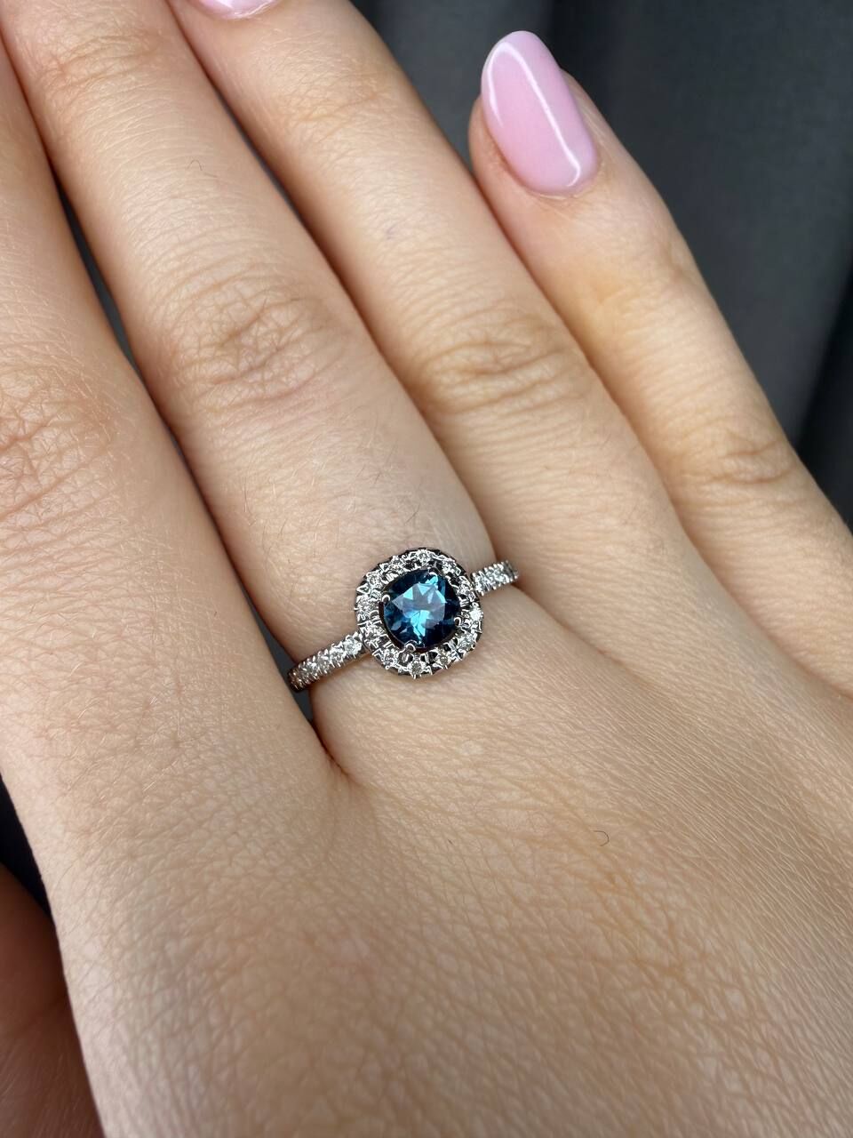 Золотое кольцо 585 пробы, камни - бриллиант белый огранка круглая 57 граней 4/5-6 - 28шт. вес 0.20 карата, топаз лондонский - 1шт. вес 0.60 карата