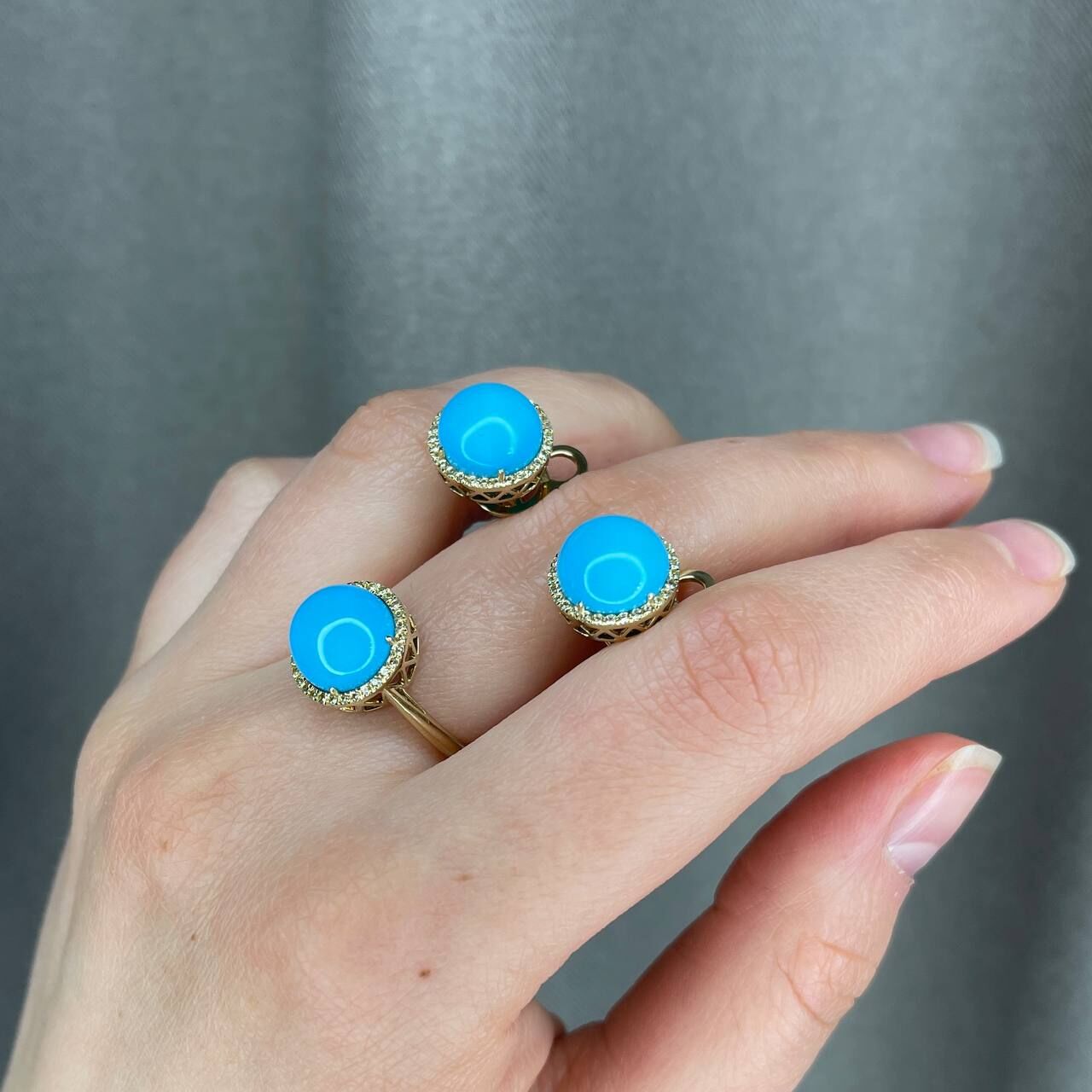 Золото 585 пробы, бирюза, сапфир