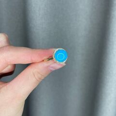 Золотое кольцо 585 пробы, камни - сапфир желтый - 30шт. вес 0.30 карата, бирюза голубой - 1шт. вес 3.55 карата