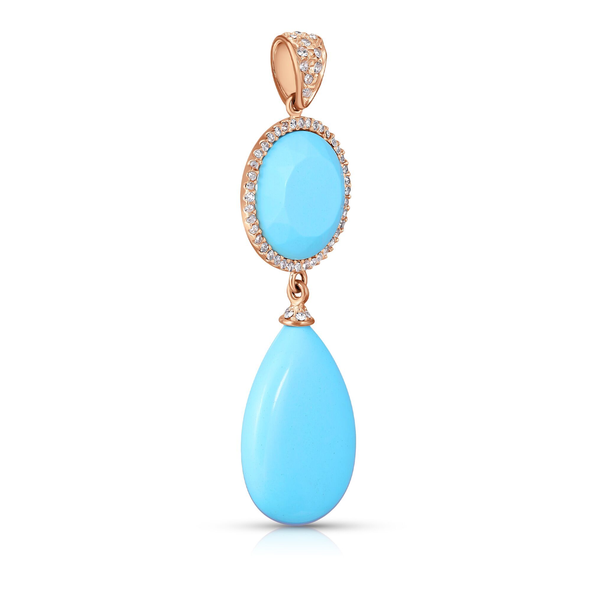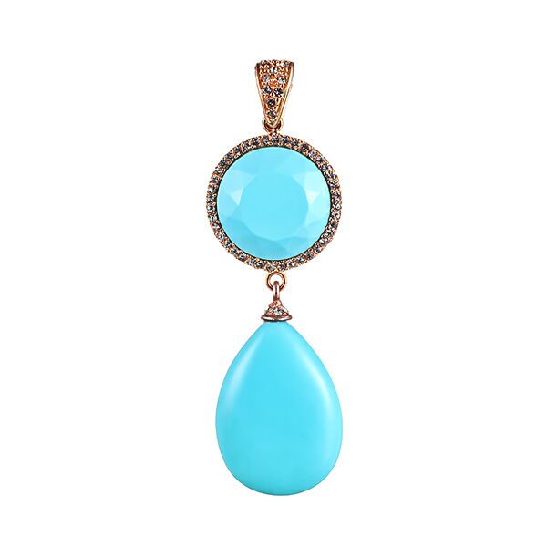 Подвеска из серебра 925 пробы с бирюзой искусственной и фианитами код. 45106