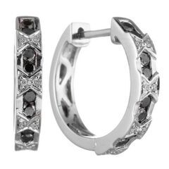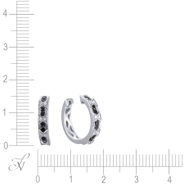 Золотые серьги 585 пробы, камни - бриллиант огранка круглая 57 граней 4/6 - 16шт. вес 0.04 карата, бриллиант облагороженный черный огранка круглая 57 граней 7/6 - 16шт. вес 0.33 карата