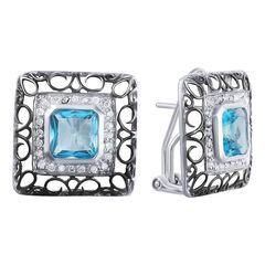 Серьги из белого золота 585 пробы с бриллиантами и топазами