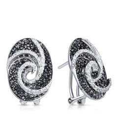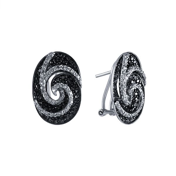 Золотые серьги 585 пробы, камни - бриллиант огранка круглая 17 граней 3/3 - 52шт. вес 0.22 карата, бриллиант облагороженный черный огранка круглая 57 граней 7/6 - 148шт. вес 1.40 карата