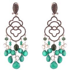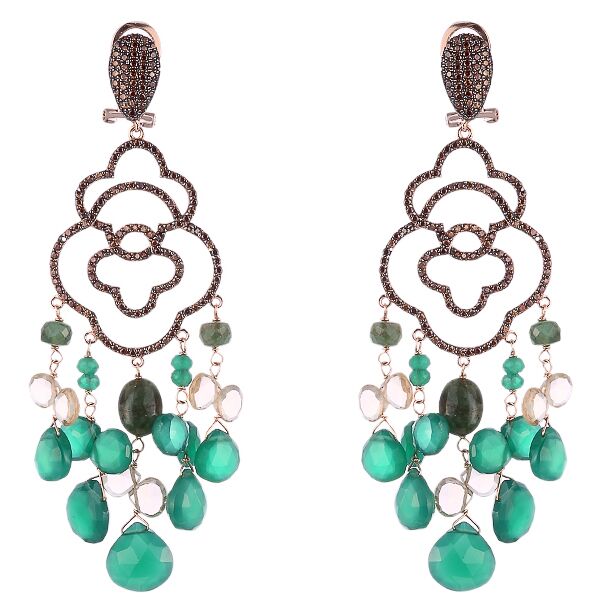 Серебряные серьги 925 пробы, камни - агат зеленый - 26шт. вес 57.60 карата, берилл - 6шт. вес 7.20 карата, кварц - 12шт. вес 8.00 каратов, фианит