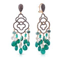 Серьги из серебра 925 пробы с агатом, бериллами, кварцем и фианитами