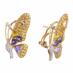 • Серьги из золота 585 пробы с бриллиантами, танзанитами, сапфирами, иолитами и цитринами (бабочки) код. 16182