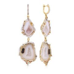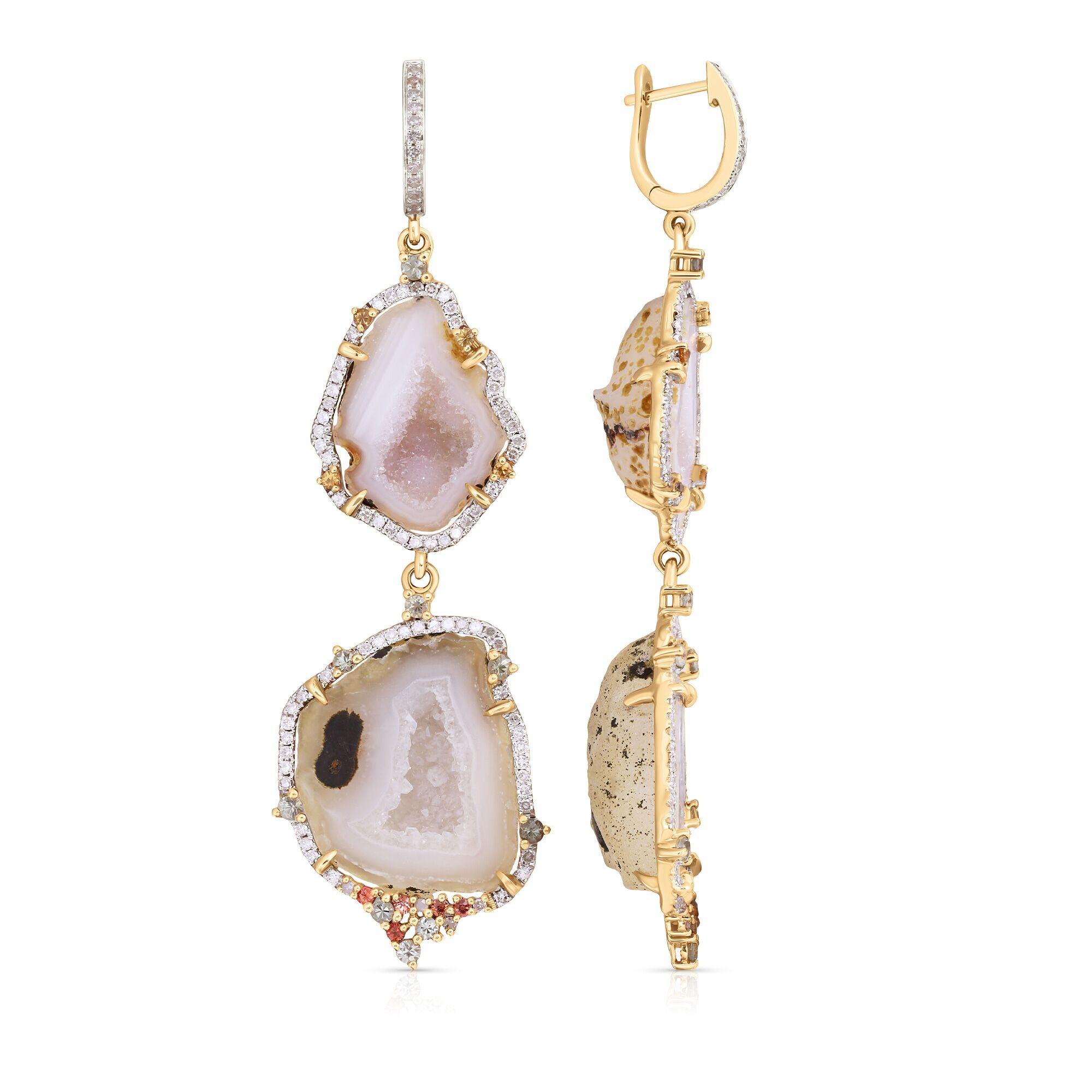 Серьги из золота 750 пробы с жеодами, бриллиантами и сапфирами
