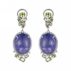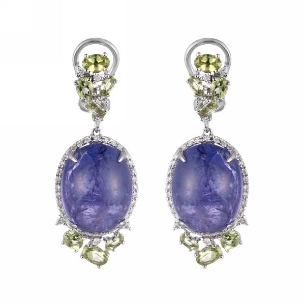 Серьги из белого золота 585 пробы с танзанитами, бриллиантами и перидотами