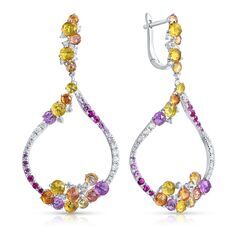 Золотые серьги 585 пробы, камни - бриллиант огранка круглая 57 граней 4/5 - 62шт. вес 0.49 карата, сапфир цветной - 60шт. вес 6.07 карата