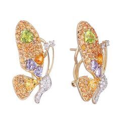 Серьги из золота 585 пробы с перидотами, бриллиантами, сапфирами, танзанитами и цитринами (бабочки) код. 17571