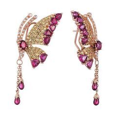 • Серьги из розового золота 585 пробы с родолитами, бриллиантами и сапфирами (бабочки) код. 18871