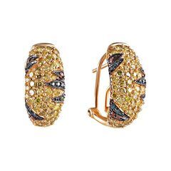 Золотые серьги 585 пробы, камни - бриллиант облагороженный голубой огранка круглая 17 граней 5/4 - 18шт. вес 0.13 карата, бриллиант облагороженный зеленый огранка круглая 17 граней 5/4 - 4шт. вес 0.03 карата, бриллиант облагороженный оранжевый огранка круглая 17 граней 5/4 - 4шт. вес 0.03 карата, бриллиант облагороженный оранжевый огранка круглая 57 граней 5/4 - 6шт. вес 0.05 карата, бриллиант облагороженный желтый огранка круглая 57 граней 5/4 - 94шт. вес 1.91 карата