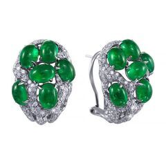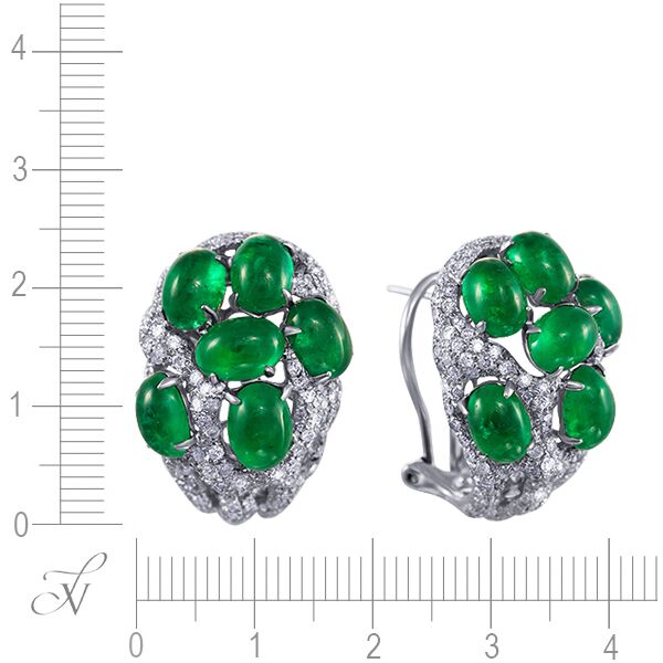 Золотые серьги 750 пробы, камни - бриллиант огранка круглая 57 граней 3/6 - 315шт. вес 2.25 карата, изумруд 3/к2 - 12шт. вес 10.31 карата