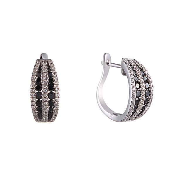 Золотые серьги 585 пробы, камни - бриллиант огранка круглая 57 граней 4/6 - 114шт. вес 0.24 карата, бриллиант облагороженный черный огранка круглая 57 граней 7/6 - 44шт. вес 0.63 карата