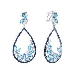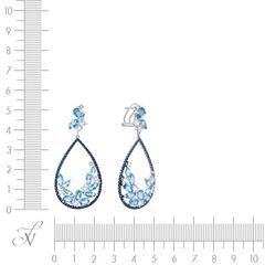 Серьги из белого золота 585 пробы с сапфирами, кварцем и топазами