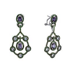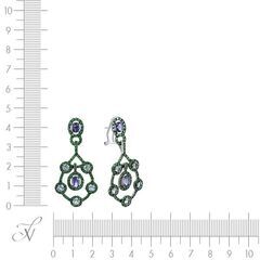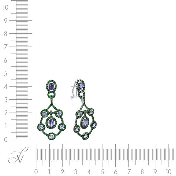 Серьги из белого золота 750 пробы с аквамаринами, иолитами и цаворитами код. 26795
