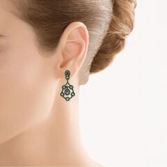 Золотые серьги 750 пробы, камни - цаворит - 230шт. вес 2.51 карата, аквамарин - 10шт. вес 1.00 карат, иолит - 4шт. вес 1.28 карата