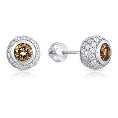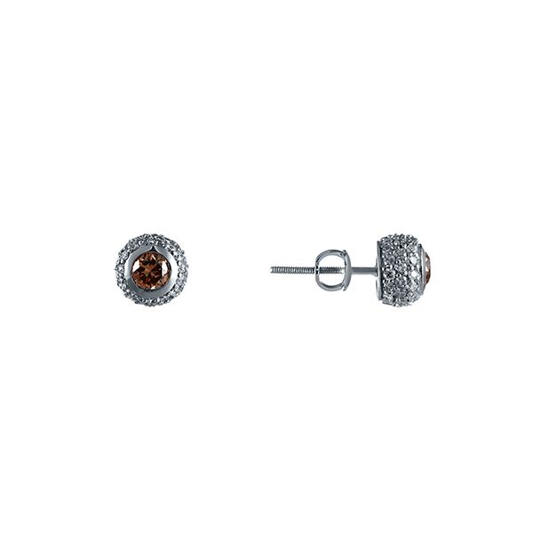 Золотые серьги 585 пробы, камни - бриллиант огранка круглая 57 граней 3/6 - 90шт. вес 0.90 карата, бриллиант коричневый огранка круглая 57 граней 9/3-6 - 2шт. вес 0.70 карата