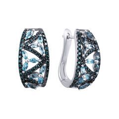 Золотые серьги 585 пробы, камни - бриллиант облагороженный голубой огранка круглая 57 граней 5/4 - 100шт. вес 0.54 карата, топаз - 22шт. вес 1.05 карата