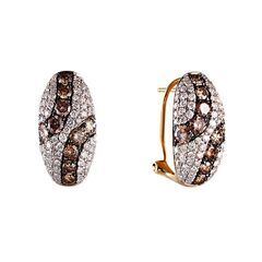 Золотые серьги 585 пробы, камни - бриллиант огранка круглая 57 граней 4/6 - 150шт. вес 1.01 карата, бриллиант коричневый огранка круглая 57 граней 7/6 - 20шт. вес 1.56 карата