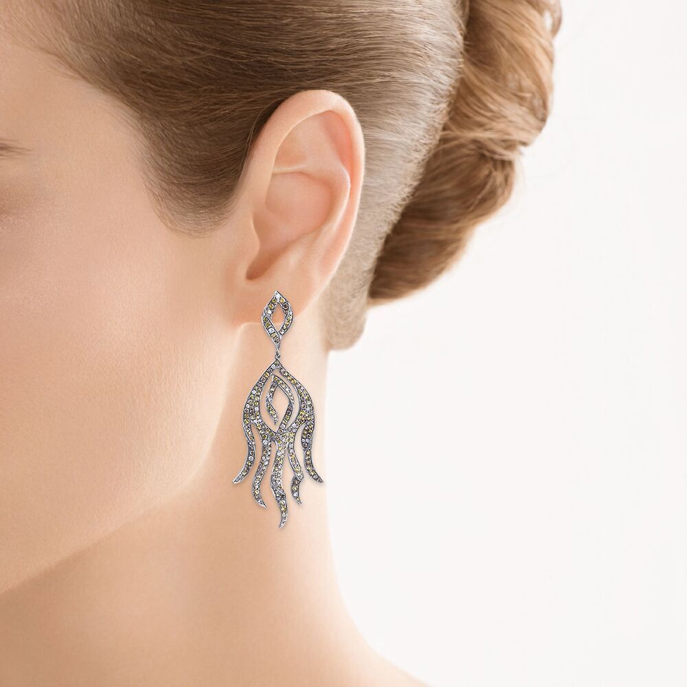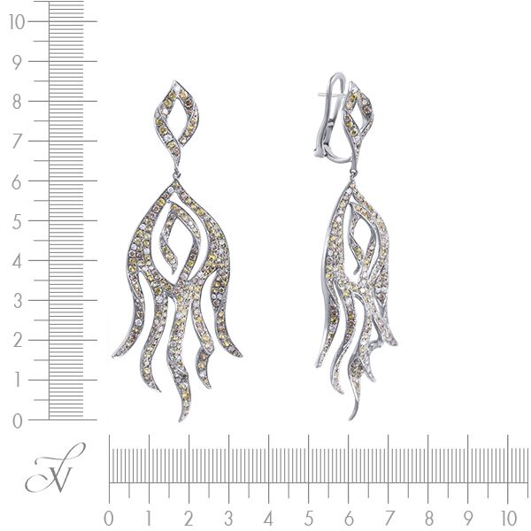 Золотые серьги 750 пробы, камни - бриллиант огранка круглая 57 граней 3/5 - 68шт. вес 1.07 карата, бриллиант коричневый огранка круглая 57 граней - 136шт. вес 2.65 карата, сапфир желтый - 220шт. вес 4.68 карата