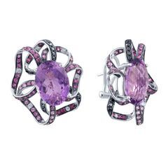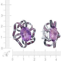• Серьги из белого золота 585 пробы с аметистами, бриллиантами облагороженными и сапфирами (цветы) код. 29200
