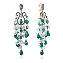 Серьги из серебра 925 пробы с агатом, адулярами, бериллами и фианитами