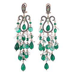 Серебряные серьги 925 пробы, камни - агат зеленый - 50шт. вес 68.90 карата, адуляр - 54шт. вес 48.40 карата, берилл - 6шт. вес 5.00 каратов, фианит