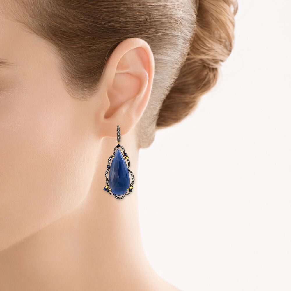 Серьги из золота 585 пробы с корундами, бриллиантами и сапфирами код. 31545
