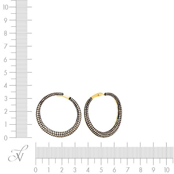 Золотые серьги 585 пробы, камни - бриллиант коричневый огранка круглая 57 граней 7/6 - 182шт. вес 2.15 карата, бриллиант коричневый огранка круглая 17 граней 7/6 - 280шт. вес 1.80 карата