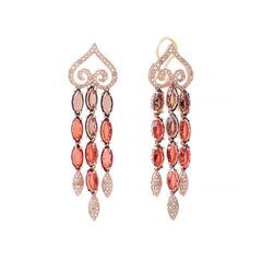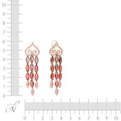 Серьги из розового золота 585 пробы с гранатами, бриллиантами и раухтопазами код. 36186