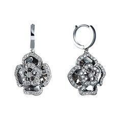 Серьги из белого золота 750 пробы с бриллиантами (цветы) код. 36710