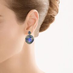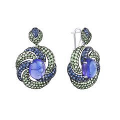 Серьги из белого золота 585 пробы с танзанитами, цаворитами и сапфирами