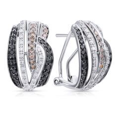 Золотые серьги 585 пробы, камни - бриллиант огранка круглая 17 граней 3/3 - 46шт. вес 0.20 карата, бриллиант коричневый огранка круглая 57 граней 7/6 - 10шт. вес 0.14 карата, бриллиант коричневый огранка круглая 17 граней 7/6 - 14шт. вес 0.10 карата, бриллиант облагороженный черный огранка круглая 57 граней 7/6 - 46шт. вес 0.46 карата