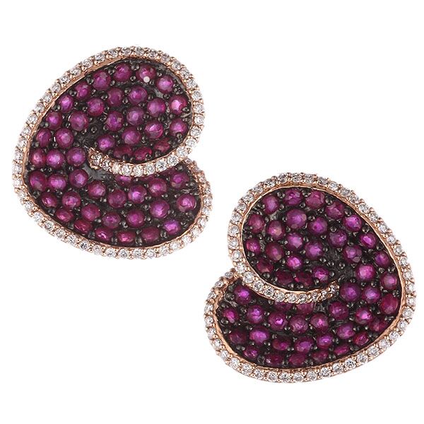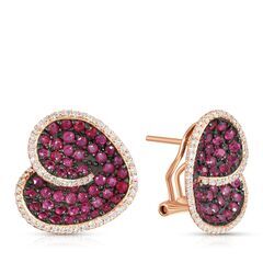 Серьги из розового золота 585 пробы с рубинами и бриллиантами