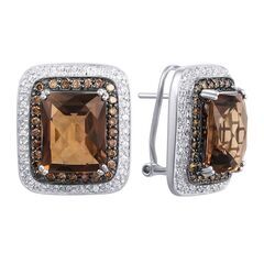 Золотые серьги 585 пробы, камни - бриллиант огранка круглая 57 граней 4/6 - 60шт. вес 0.24 карата, бриллиант коричневый огранка круглая 57 граней 6/7 - 56шт. вес 0.75 карата, раухтопаз - 2шт. вес 10.91 карата
