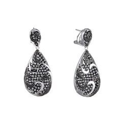 Золотые серьги 585 пробы, камни - топаз белый - 338шт. вес 6.00 каратов, бриллиант черный огранка круглая 57 граней 7/6 - 82шт. вес 0.50 карата