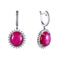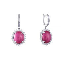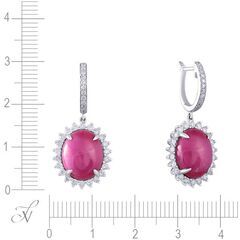 • Серьги из белого золота 750 пробы с рубинами звездчатыми выращенными и бриллиантами код. 46200